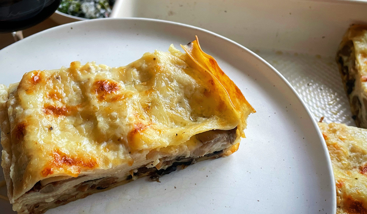 As for the make-ahead bit, you can sauté the mushrooms the day before, even grate the cheese, and keep both well-sealed in the fridge until needed. Lasagna noodles, store-bought or homemade, can be boiled a few hours ahead of time and kept under damp kitchen towels. Bechamel sounds exotic and complicated, but it comes together in minutes.