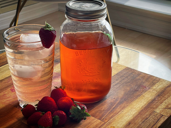 - Strain the fruit from the liquid, reserve strawberries for a future use (see below)